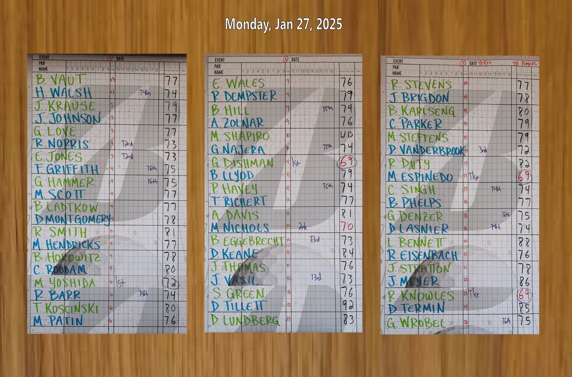 T1 | Roger Knowles | 69 | $ 25.13 |