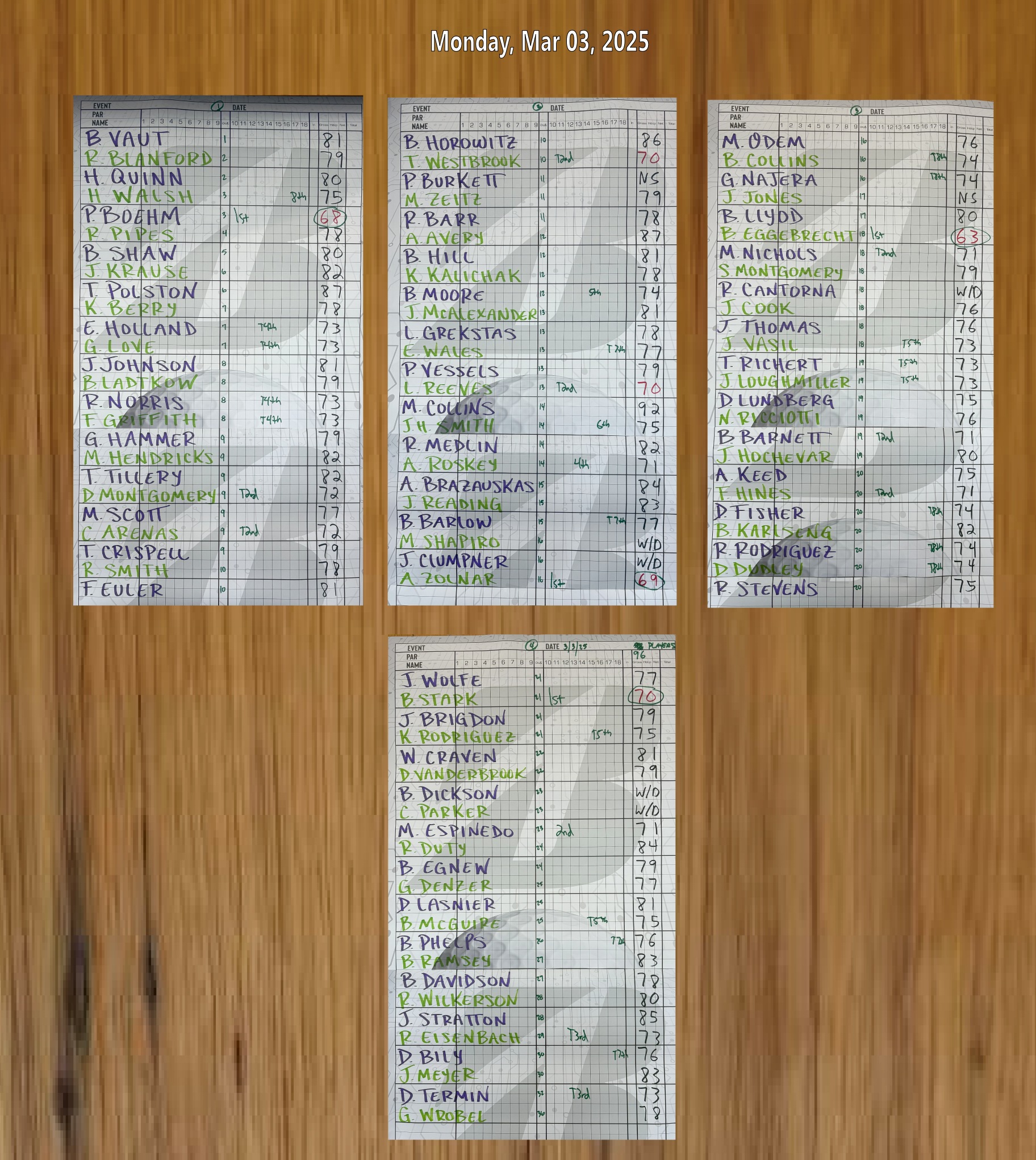 1 | Bob Eggebrecht | 63 | $ 31.00 |