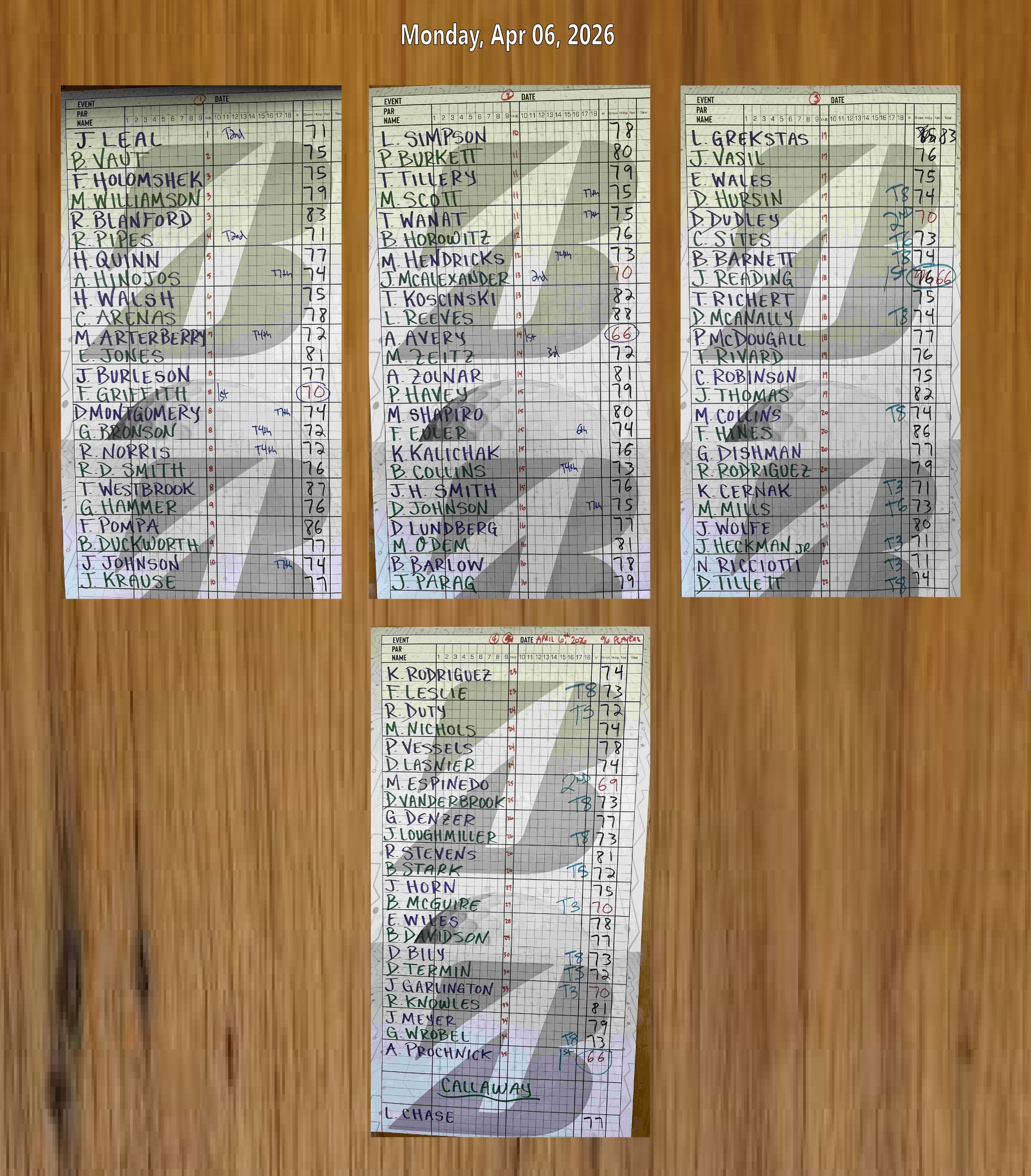 | 1 | Alan Prochnick | 66 | $30.75 |