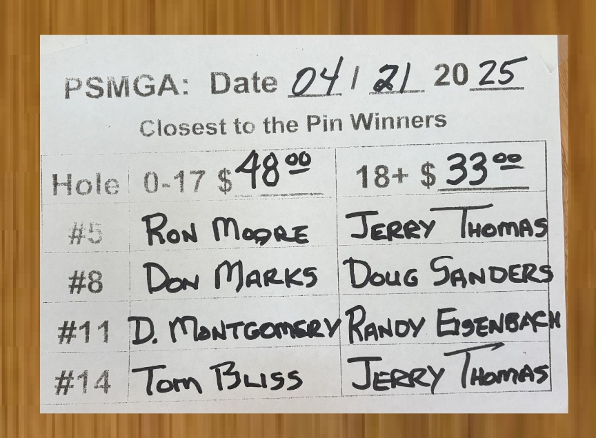 T4 | Douglas Merriott | 145 | $ 4.00 |