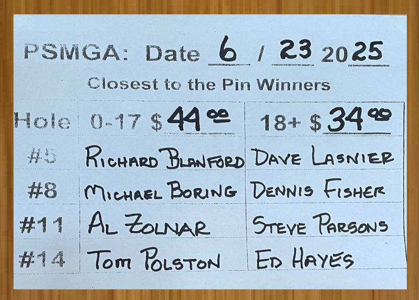 T1 | Mike Williamson | 69 | $ 25.00 |