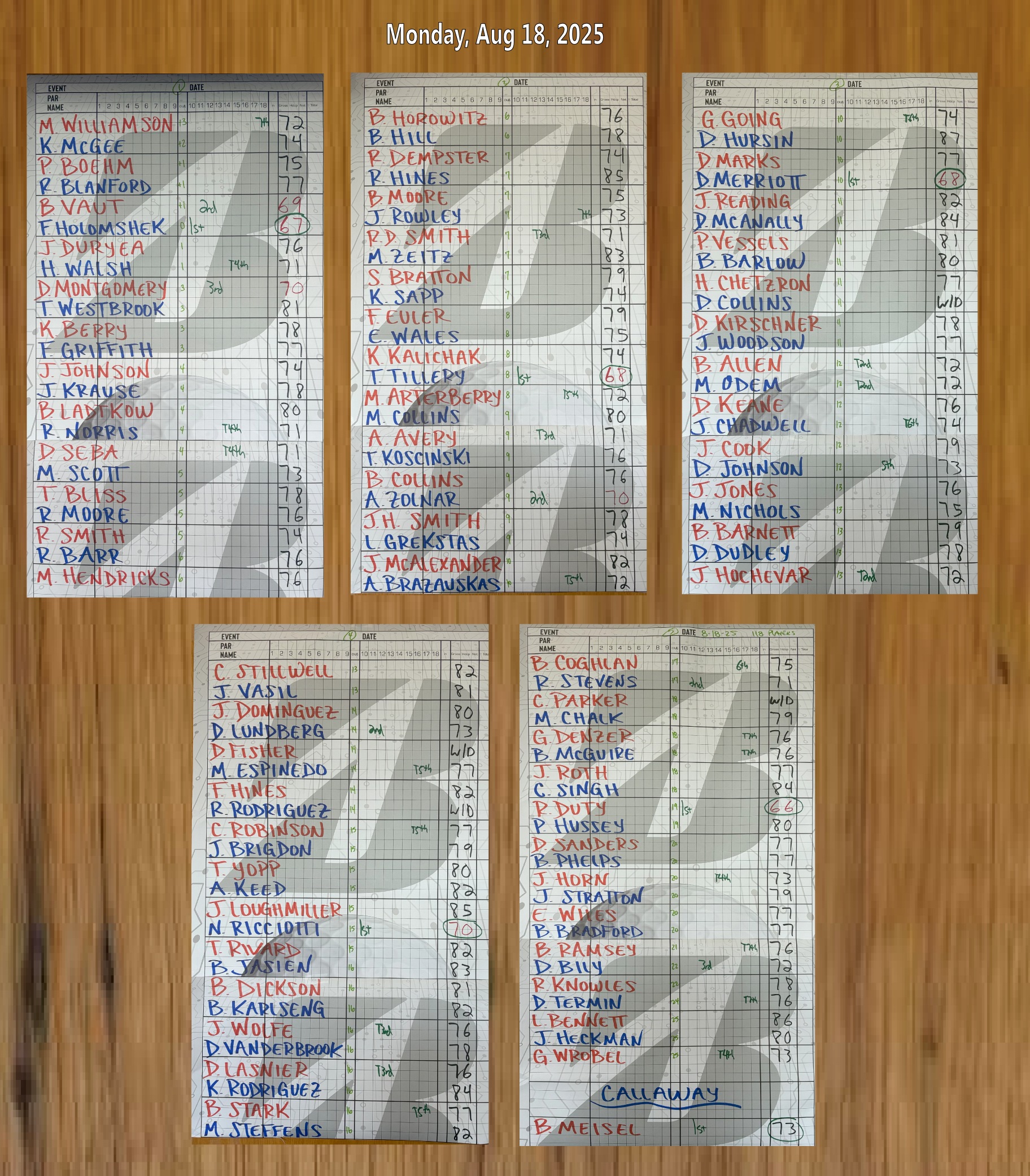 1 | Bruce Meisel | 73 | $5.00 |