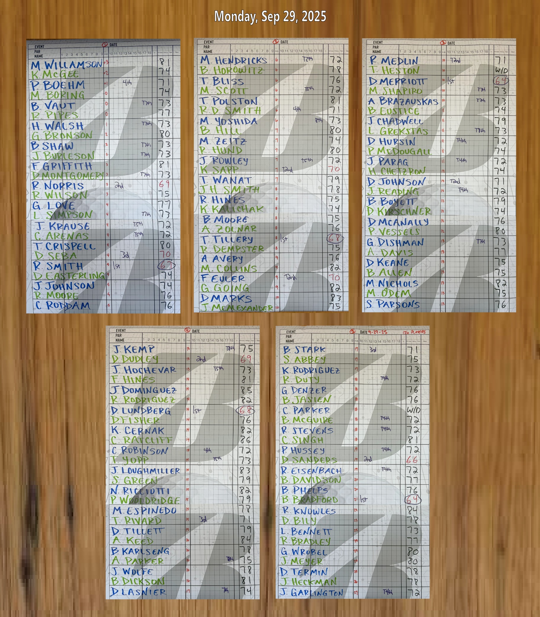 T5 | Jim Rowley | 72 | $10.00 |