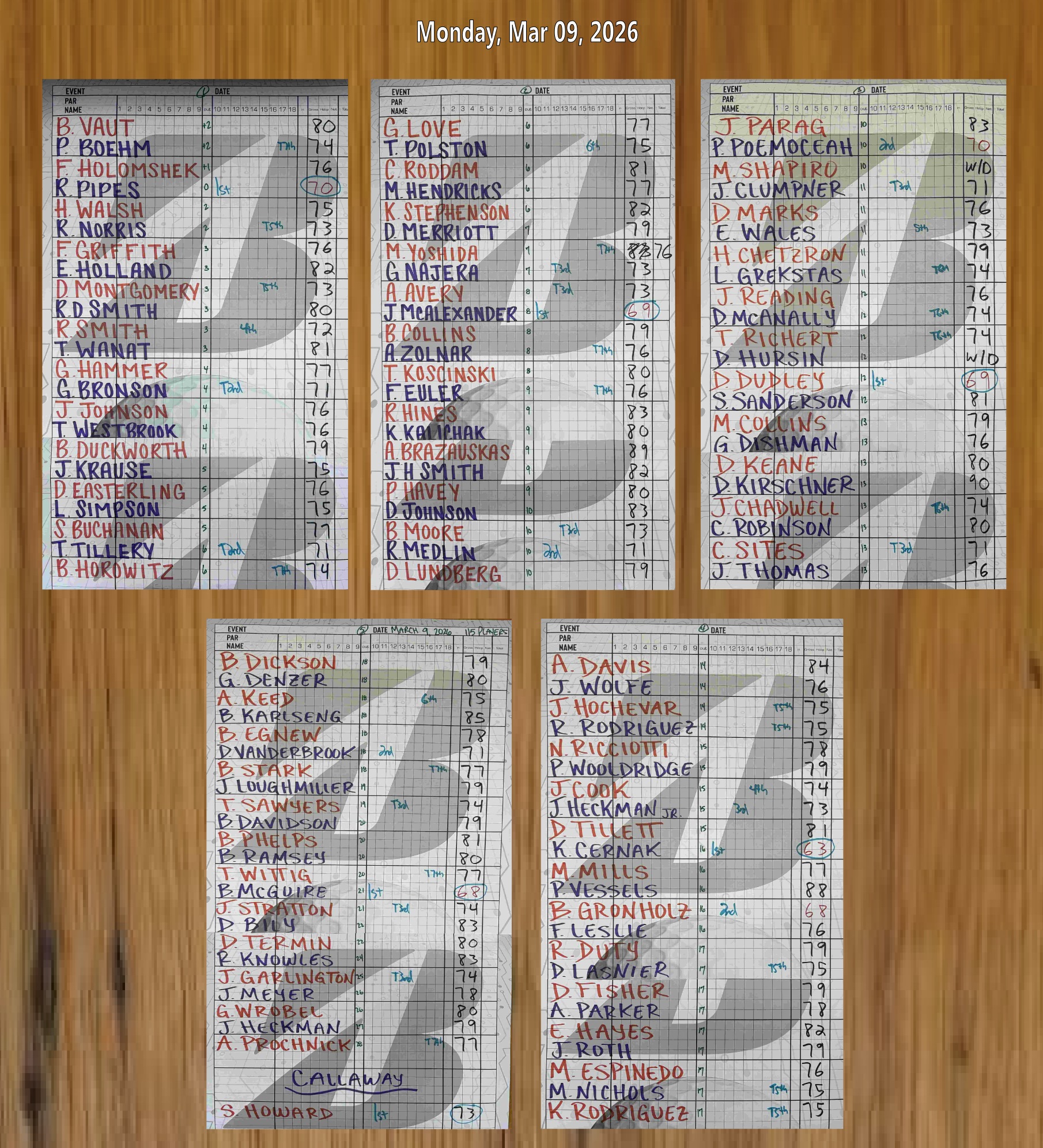 | 5 | Ed Wales | 73 | $11.50 |